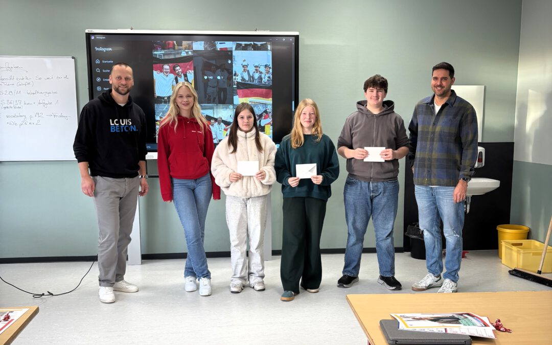 Am Donnerstag, dem 13.11.2025 führte Gerrit Terfehr, Geschäftsführer des Bauunternehmens Günter Terfehr Bautechniker GmbH & Co. KG, im Jahrgang 9 das Quiz der Wirtschaftsjunioren Deutschland durch. Den Schülerinnen und Schülern wurden dabei 30 Multiple-Choice-Fragen zu verschiedenen Themen, wie Wirtschaft, Politik, Internationales, Finanzen und Ausbildung gestellt. Die meisten Punkte erreichte Lara Austermühle vor Anna Lena Hinrichs und Timm Henzen. Im Klassenvergleich setzte sich die Klasse 9b knapp gegen die Klasse 9a durch. Alle drei Sieger erhielten einen Preis und die Klasse 9b einen Beitrag für die Klassenkasse. Laras Ergebnis wird nun weitergegeben und sie kann sich vielleicht für das Kreisfinale qualifizieren. Wir drücken die Daumen! Im Anschluss an das Quiz hatten die Schülerinnen und Schüler noch die Gelegenheit Herrn Terfehr Fragen zu stellen. Vielen Dank an Gerrit Terfehr für die Durchführung und das Gespräch.