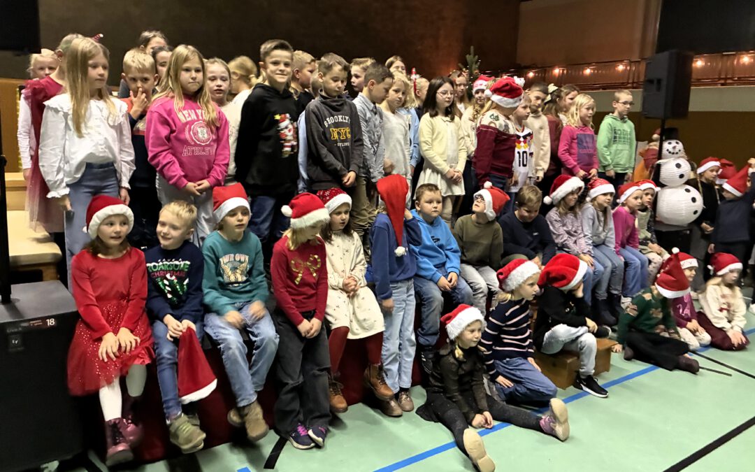 In weihnachtliche Stimmung versetzten die Kinder der Grundschule in zwei Weihnachtsfeiern ihre Eltern und Angehörige. In jeweils 45 Minuten präsentierten die Schülerinnen und Schüler der jeweiligen Klassen in der großen Turnhalle adventliche Gedichte, Lieder und Theaterstücke, die die Vorfreude auf Weihnachten und die Botschaft dieses Festes widerspiegelten. Ob das Warten aufs Christkind, der Blick ins Innere einer Schneeflocke oder die Aneinanderreihung von kunterbunten Weihnachtswünschen – am Ende sorgten die Kinder für großen Applaus und entließen die Zuschauenden mit einem gemeinsamen Weihnachtslied aller Akteure in den Feierabend. Ein Dank gilt allen Mitwirkenden und den Lehrkräften für ihren großartigen Einsatz!